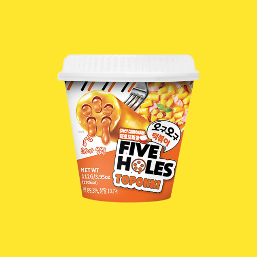 A bold fusion snack combining chewy Korean rice cakes featuring a unique “five-hole” design for maximum sauce absorption, paired with a creamy carbonara flavour and spicy kick. The rice cakes are made from 99% pure rice for a soft-yet-chewy texture, and the cream-chilli sauce blends creaminess, garlic, basil, red pepper and cheese notes for an intense taste experience.